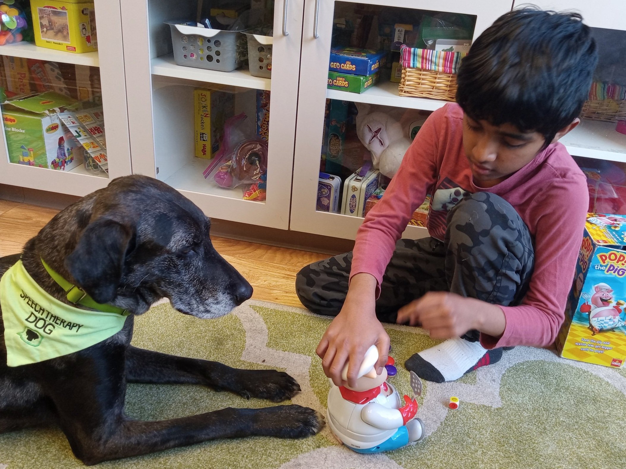 Having the therapy dogs present provided a positive association to arriving at speech therapy for Paul, which in turn meant that when he arrived he was less likely to be in a state of fight-flight-freeze (sympathetic nervous system response).