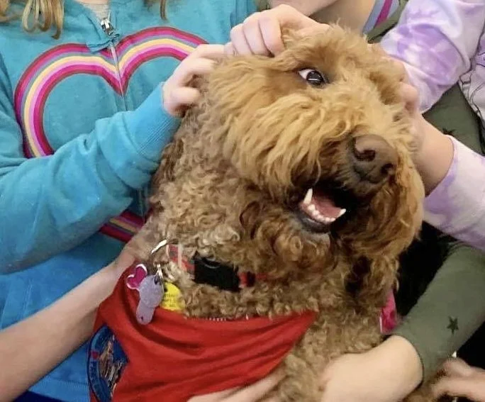 Therapy dog Carmel receives lots of love from the elementary school students she helps with both academic and social-emotional skills as part of weekly animal-assisted education activities.