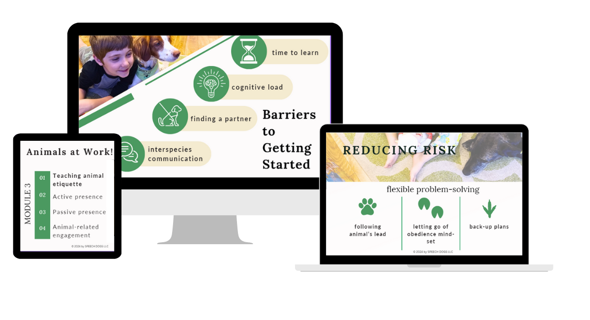 Five years later and having partnered with three very different therapy dogs, I compiled all I learned so other speech therapists and related professionals won’t have to start from scratch like I did.